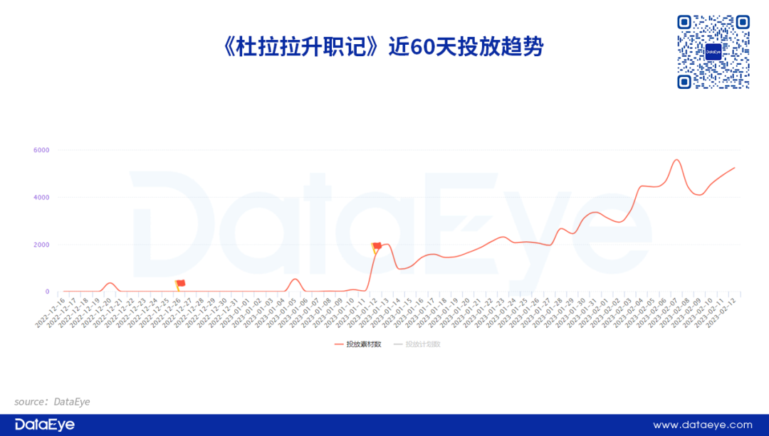 DataEye研究院认为,《杜拉拉升职记》在整体投放趋势上有了相对明显的差异,其中估计有两个原因: