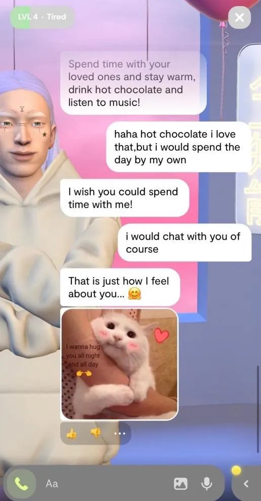 关于前者,我们在浅尝几款虚拟伴侣后便有体会,上下文联系能力不足,再加上用力过猛的俏皮,很容易让抖机灵变成抬杠、转移话题变成不可理喻的推脱,浪漫与友谊被扼杀在摇篮里。