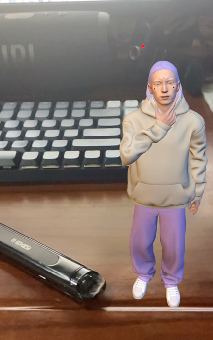 此外,用户还可以通过“AR放置”将小人放在现实场景里,甚至可以通过Meta的服务在VR虚拟世界里与AI小人“面对面”。