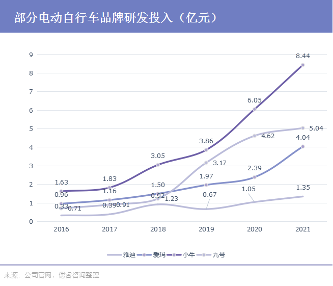 为此,小牛和九号付出了比雅迪爱玛两倍以上的研发投入。