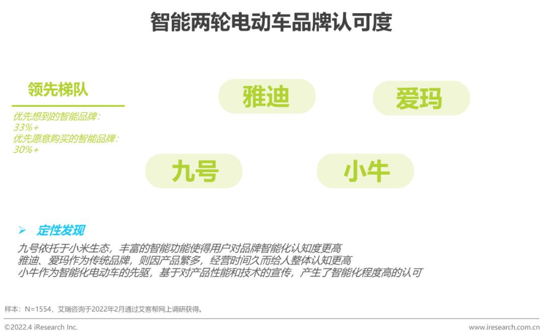 (智能两轮电动车品牌认可度 图源:艾瑞咨询)