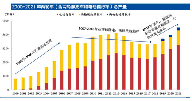 ( 2000-2021年两轮车总产量 图源:新国标电动车行业市场调查分析报告)