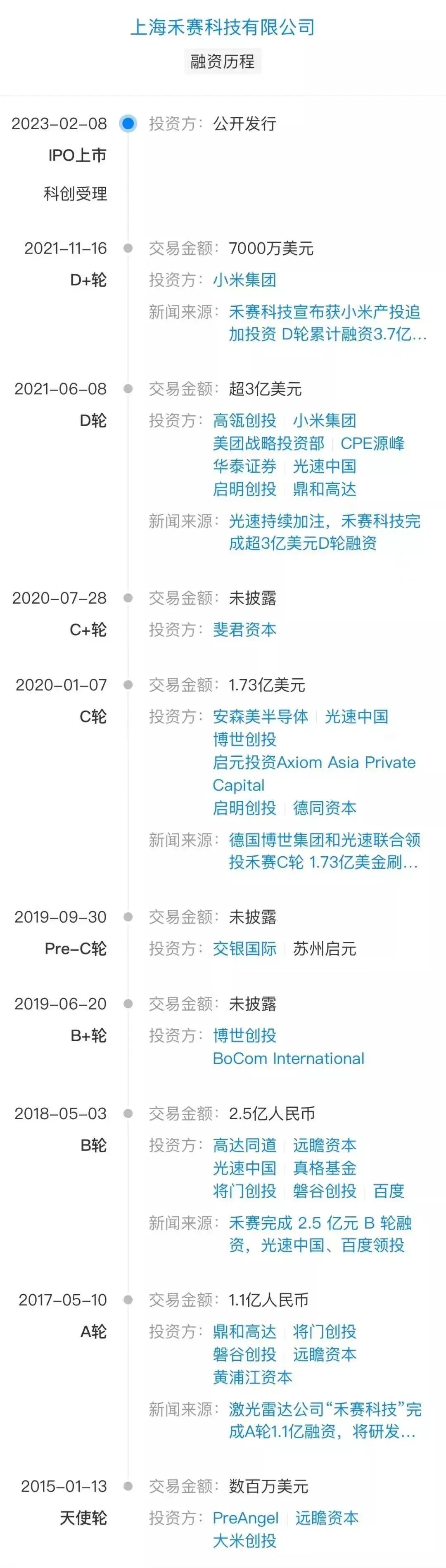 更大的好消息是,从2017年到2020年,禾赛完成了6轮融资,俨然是一颗冉冉升起的新星。