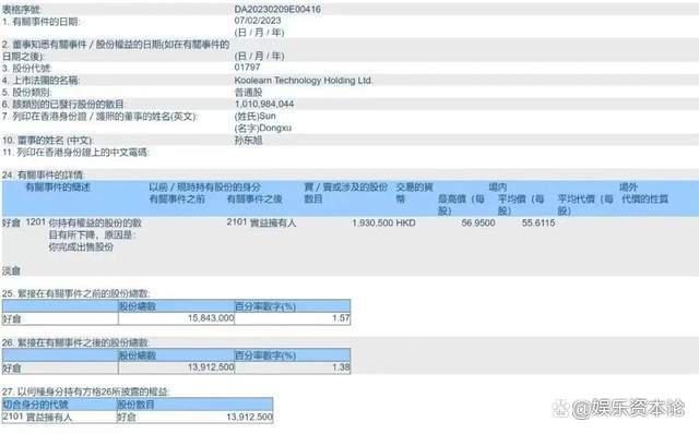 最近,新东方在线递交给港交所的文件显示,新东方在线CEO孙东旭分别在2月7日和2月8日连续进行了两次减持,持股比例从1.57%降到了1.18%,总计套现2.17亿港元。