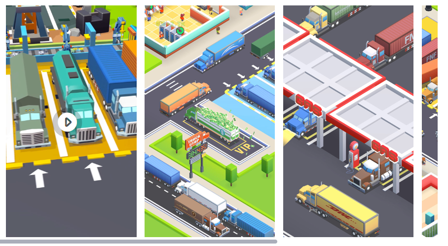 也正如此前文章介绍的,速诺科技发布过多款汽车相关题材的模拟经营+放置游戏,《Camping Tycoon》扑街后,总算又跑出了一款《Truck Stop Tycoon》。《Truck Stop Tycoon》于 2022 年 8 月上线,截止同年年底已在全球斩获近 400 万次下载量和近 150 万美元的营收,主要的下载和营收均来自于美国。这款游戏在玩法上并未有太多升级,主要跑出的原因或许在于题材+买量素材的升级。笔者简单查看了这款游戏展现量较高的素材,发现其集中投放了一批卡车抢车位、小汽车违停引发争执的剧情向广告,有一款呈现卡车抢车位的素材自 2022 年 7 月开始投放,累计展现量已经有 400 多万。