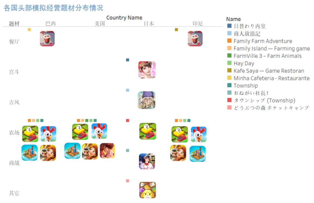 题材上,日本用户表现出很强的“包容性”,美国市场则专一于农场,印尼和巴西也与美国市场的情况差不多,但这个观察,同样需要开发者辩证思考。