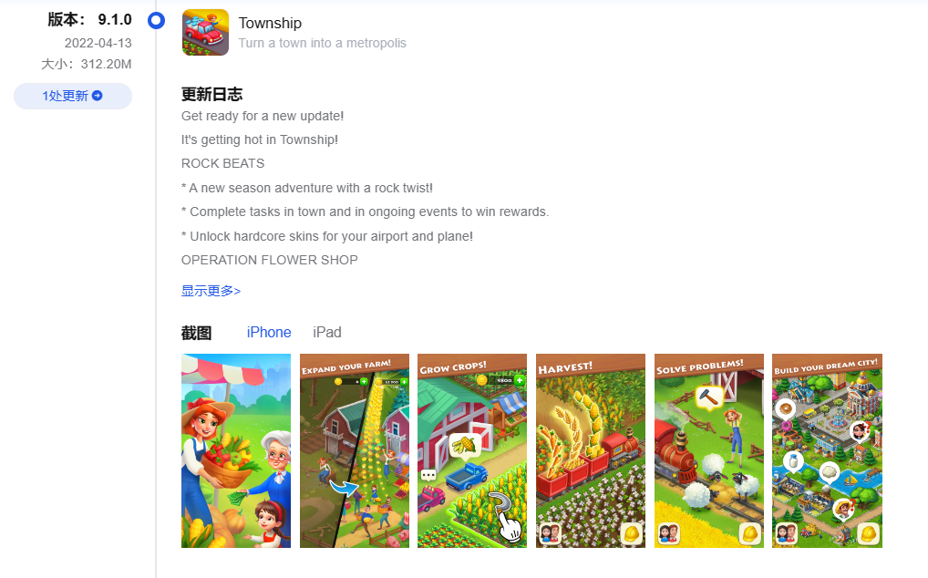 下载增长超100%、单一市场年流水破亿美金,上线快10年的Township还有什么秘诀