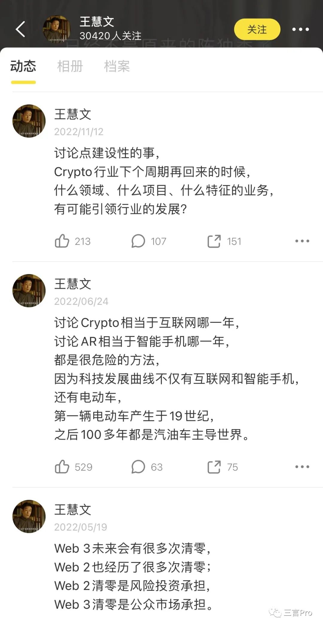 这让人很多人以为王慧文将会涉足Crypto以及web3领域。