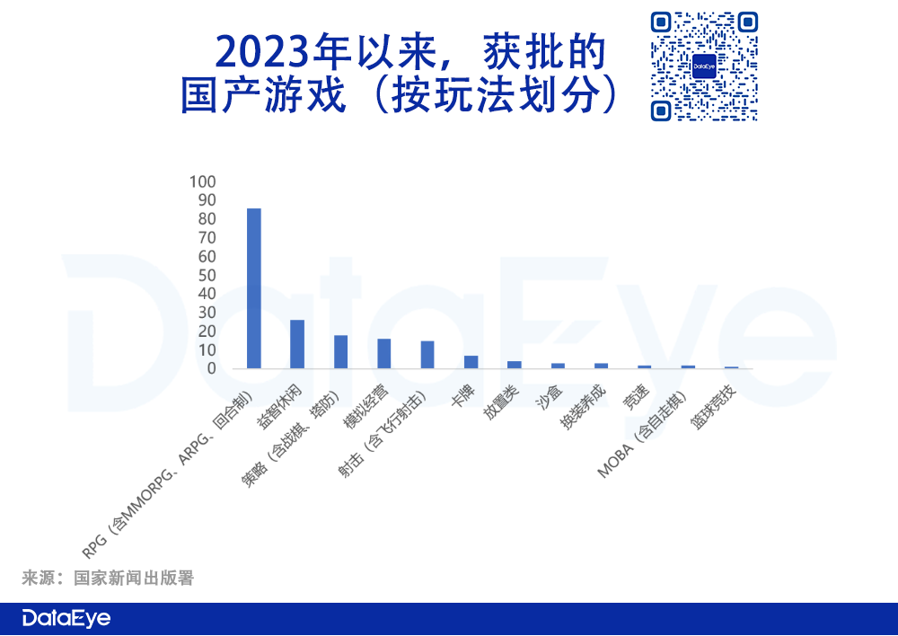 从游戏玩法来看,在2023年获得版号审批的国产游戏中,角色扮演、益智休闲和策略类游戏位列前三,其中角色扮演RPG这一大类占比超4成(当然,RPG本身涵盖的子分类就比较多)。