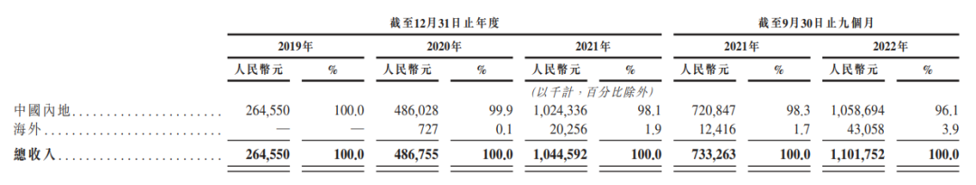 但是相较于中国内地市场,海外市场收入微乎其微,虽然占同期总收入的百分比在逐渐提高,但2022年前九月的占比依然仅为3.9%。
