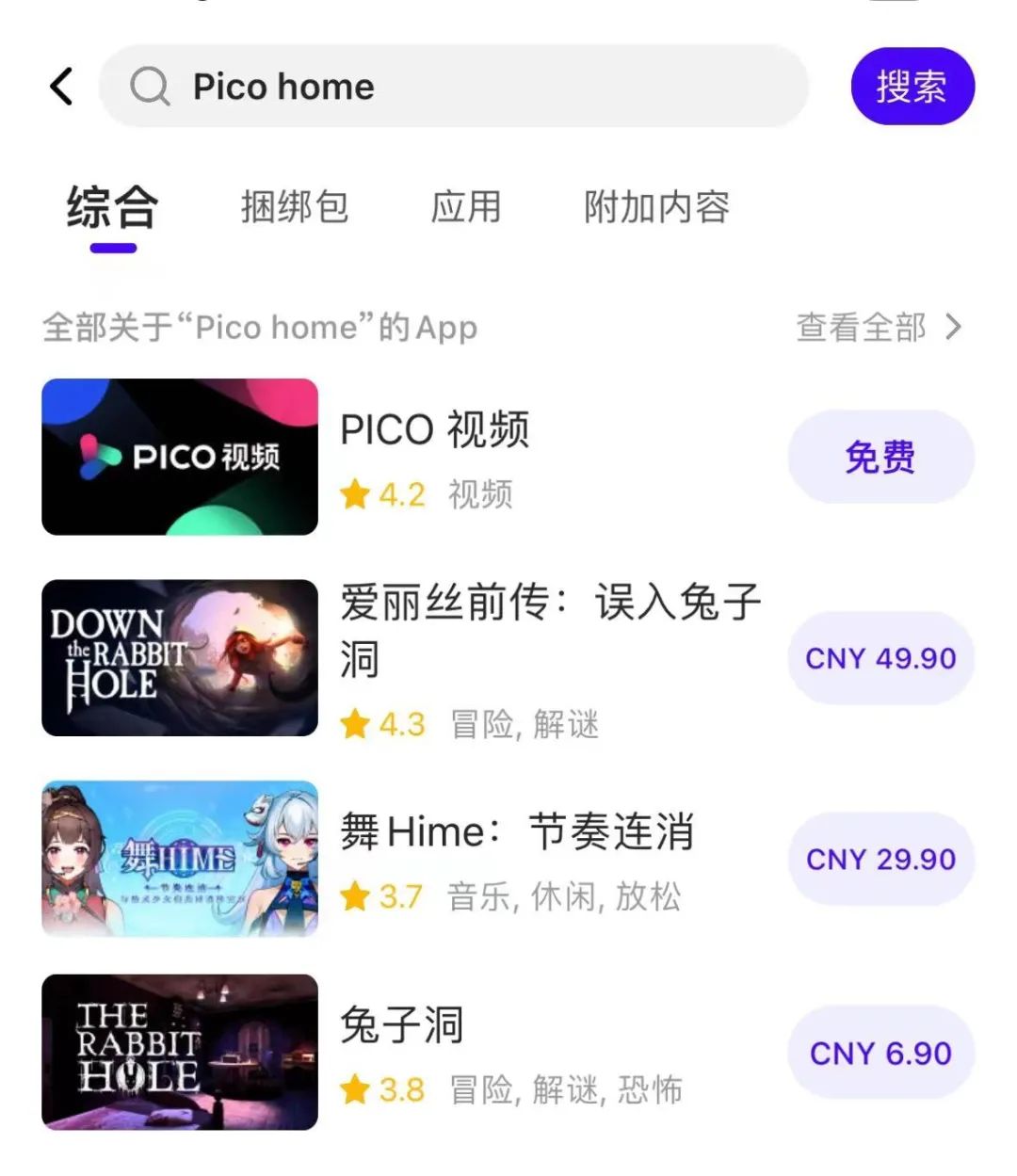 PICO Home这个功能主打大家可以约好一个房间,聚在一个虚拟影院里看同一部电影或节目。但《豹变》发现这个功能也已经被下架,在“PICO VR”APP中也已经搜不到相关应用。陆清回应《豹变》说:“虽然它很简陋,但是PICO确实在还没有找到替代品的时候就直接把它也砍掉了。”