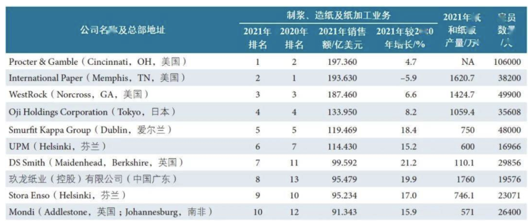 2022年,Paper 360杂志推出了2021全球造纸企业75强年度榜单(根据企业在制浆、造纸及加工业务领域的净销售额排名,企业中与造纸无关的业务不计入业绩),长期霸榜世界纸业龙头的国际纸业却突然从榜首跌落,将全球之最的位置拱手让给了宝洁的(生活用纸、卫生巾、尿不湿等)造纸业务。难道是国际纸业不行了?