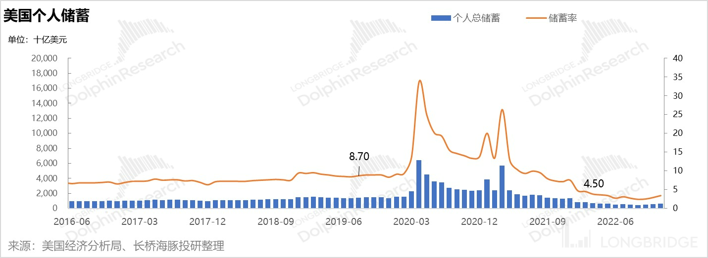 考虑到市场上真正意义上的高利率才只有四季度单季时间,还需要观察高利率稳态之后,举债消费 + 违约率恶化的情况。如果举债消费仍旺盛,很可能短期拉高抗通胀的难度,而中期助长衰退风险。