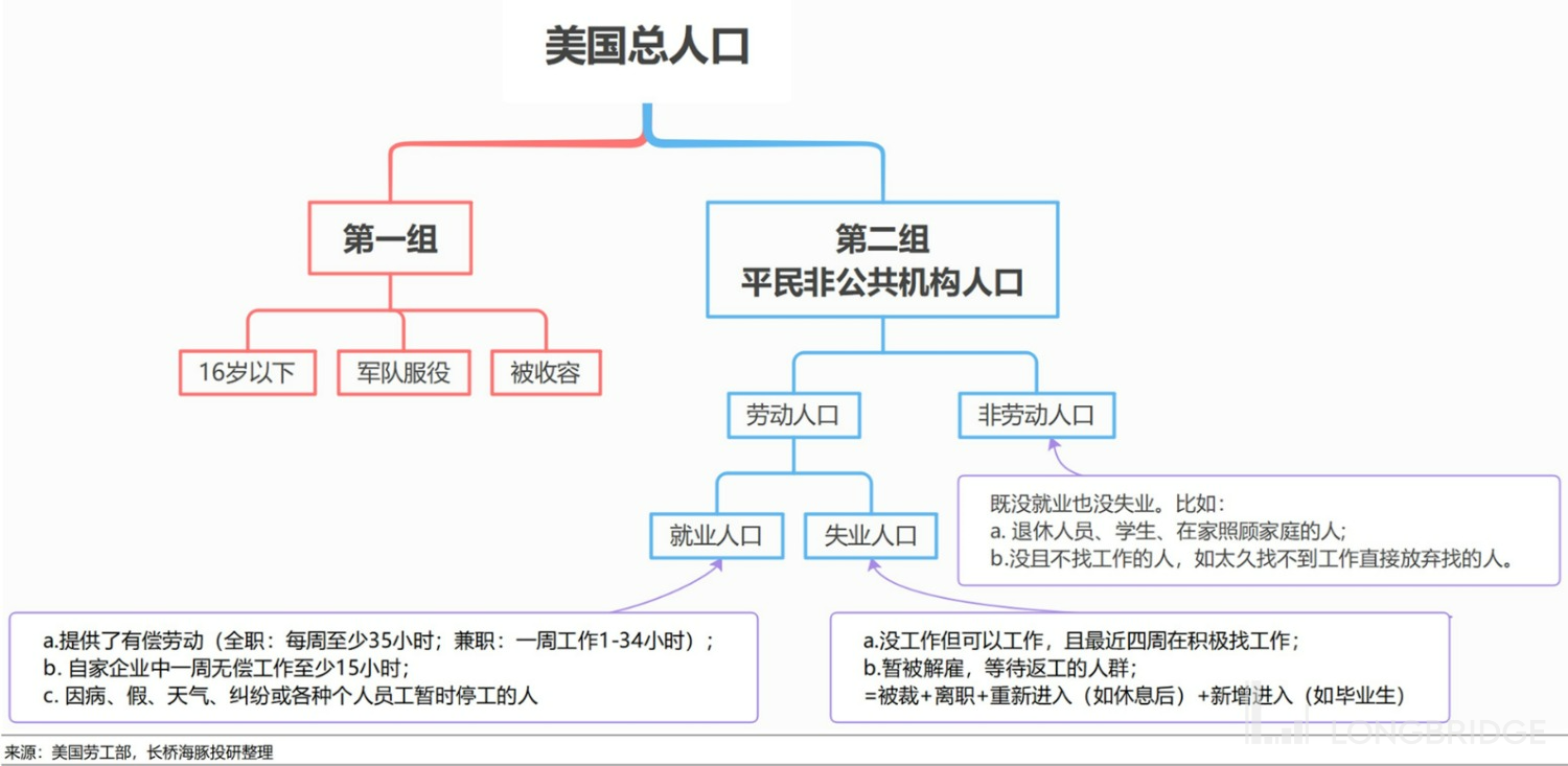 c 去掉这些剩下的才是劳动人口,而劳动人口中又分已就业的就业人口和没工作但正在找的失业人口(具体定义见下图)。
