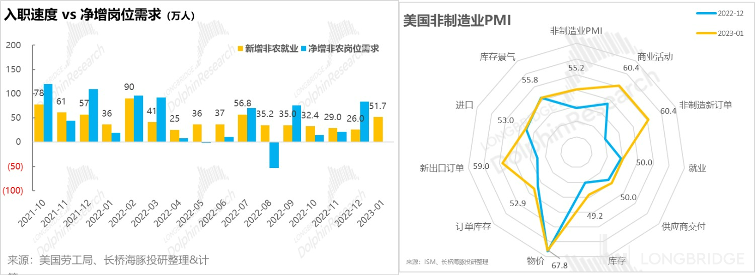 ①1 月接近 52 万的就业狂飙;②服务业 PMI 的再度扩张(见图一图二);③ 1 月零售的回归(见图三):