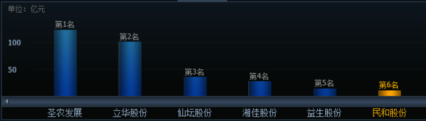 ▲肉鸡养殖行业营收前6,来源:同花顺(不包括温氏)