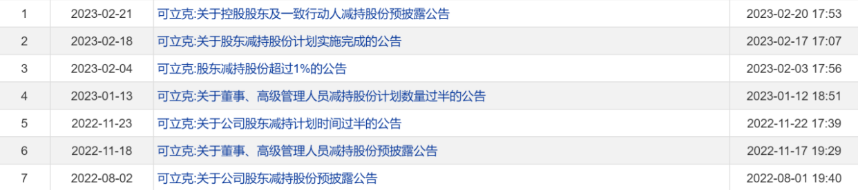 不过,据公告显示,这次减持并非近一年来可立克的首次减持。![]()