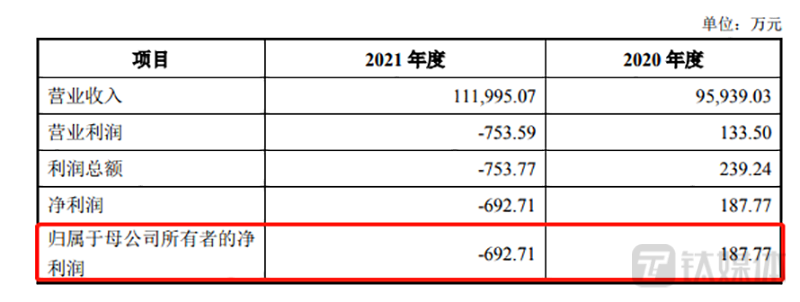 值得注意的是,2021年海光电子的营业收入达11.20亿,但盈利能力堪忧,2020年-2021年,海光电子的净利润分别为187.77万、-692.71万。