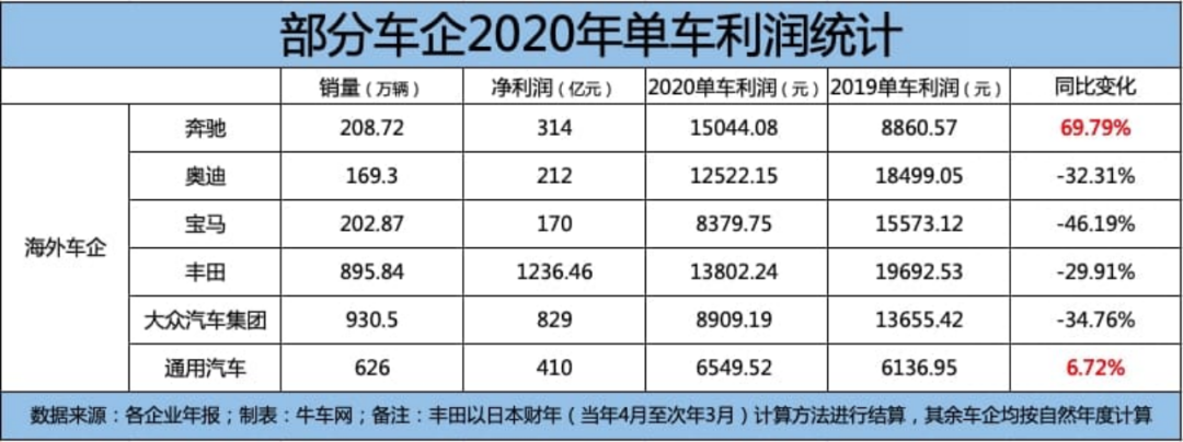 实际上,上面这份表单中的国外六大集团的净利润完全是靠一些高档车型(比如奔驰S级)托起来的。它们的中低端车型的平均利润相当微薄。