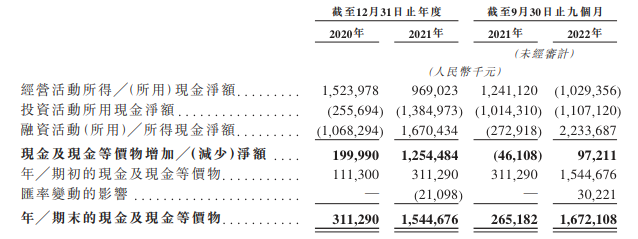 问题是,搭建直销团队也需要成本,珍酒李渡的现金流正节节败退。《招股书》显示,2022年前三季度,珍酒李渡的经营性现金流为10.29亿元,相较于2020年的15.24亿元下跌32.48%。