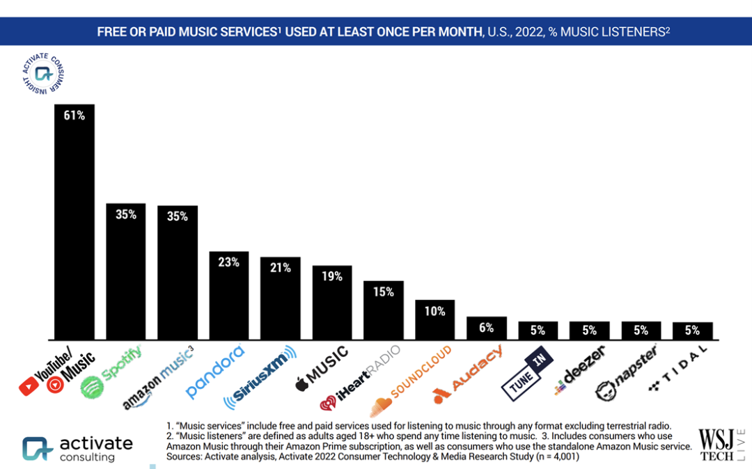 况且,从外部环境来看,除了对宏观经济环境不稳定的担忧之外,在英美国市场,Spotify还面临着较为激烈的竞争,涨价必然是有风险的。据咨询公司Activate Consulting近日发布的报告,2022年,Amazon Music已经和Spotify在音乐用户的渗透率持平,为35%。