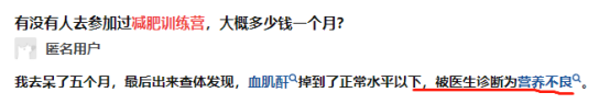 不过对于训练营来说,只要学员体重掉了,教练们的 KPI 就完成了。至于学员们的身体健康,只要不死在训练营里面,都不是大事儿。