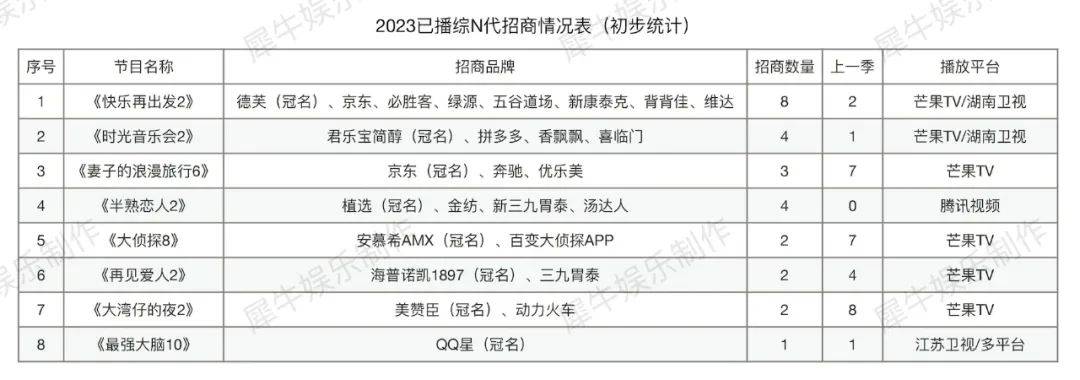 尽管上面所提的很多综艺仍然在“掉赞助”,但相比去年“裸播成风”的集体惨相,今年大部分的项目至少不至于落入没汤可喝的境地。
