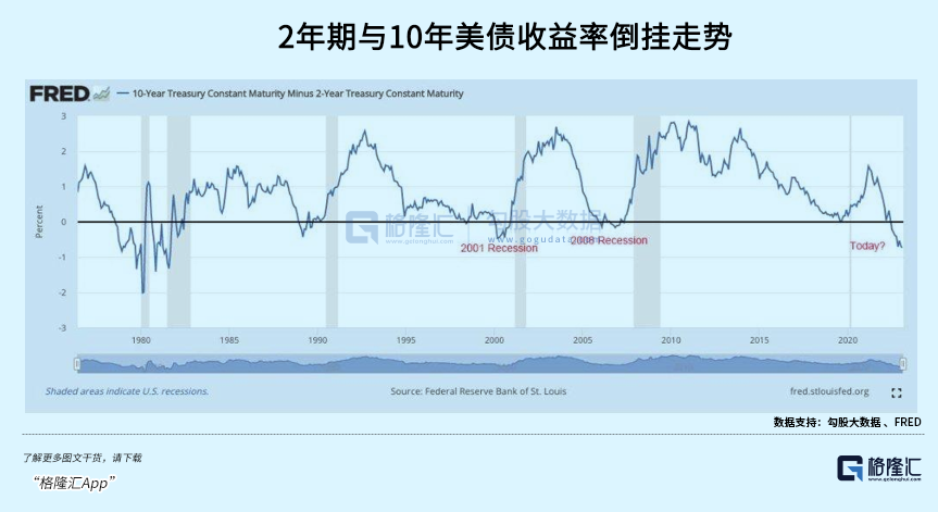 此外,2年期10年期国债收益率持续的深度倒挂并没有引起市场足够的警觉。当前,两者倒挂幅度高达90个基点,继创40年来最深的倒挂幅度,远超2001年以及2008年。