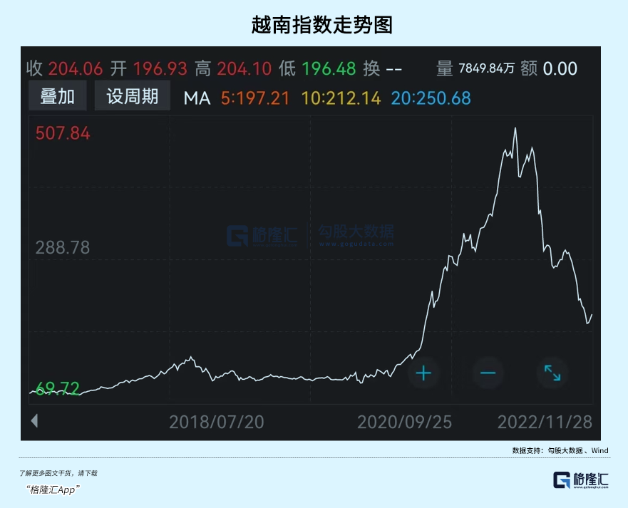 收割小小的越南不在话下。越南指数在2021年夺得全球涨幅榜第1之后,短短1年有余,从高位回撤超过59%,最大跌幅更是高达66%。