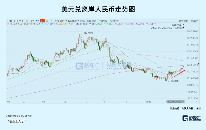 决定美联储货币政策有两只手,一个是就业,一个是通胀。就业数据异常火爆,也代表着通胀粘性会比较大,也自然会影响美联储加息的节奏。2月3日到6日,美元指数2个交易日累计大涨近2%,开启本轮反攻大势。