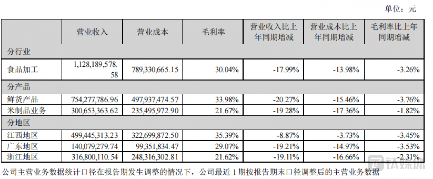 同时,米制品业务2022年端午销售受疫情影响,经销、团购等渠道订单量减少,加之后期受疫情影响生产人员不足,使得生产能力不能完全满足生产加工和订单需求,米制品业务营收同比下降18.28%。