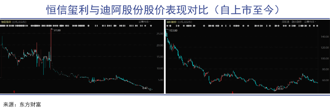 凭借“男士一生仅能定制一枚”走红而在2021年上市的DR,在2022年遭遇业绩“滑铁卢”。所属上市公司迪阿股份前三季度实现营业收入30.43亿元,同比下滑10.79%;实现净利润7.73亿元,同比下滑22%。股价最深下跌幅度超过了75%。