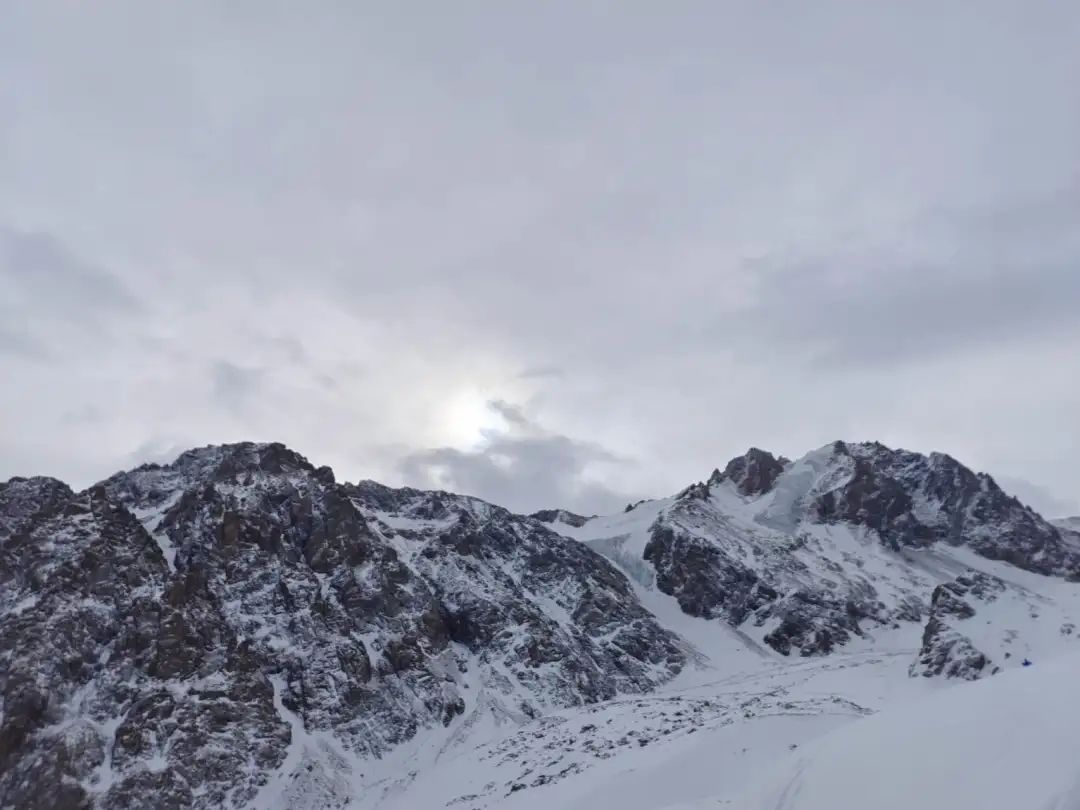 琼布拉克雪场3200米山顶的另一侧,能看到冰川。/摄影:张海律
