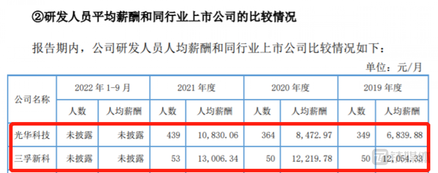 有意思的是,虽然毛利率不如同行,但天承科技研发人员的待遇却远高于同行。公开资料显示,2019年-2021年,天承科技研发人员的人均薪酬分别为18637.34元/月、17876.56元/月、18577.91元/月,而同行可比公司研发人员的薪酬具体如下: