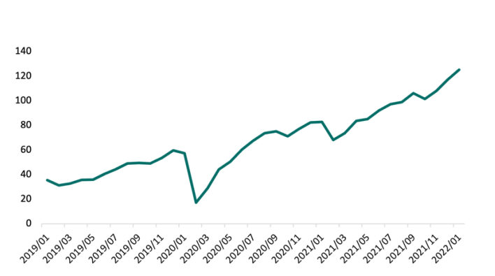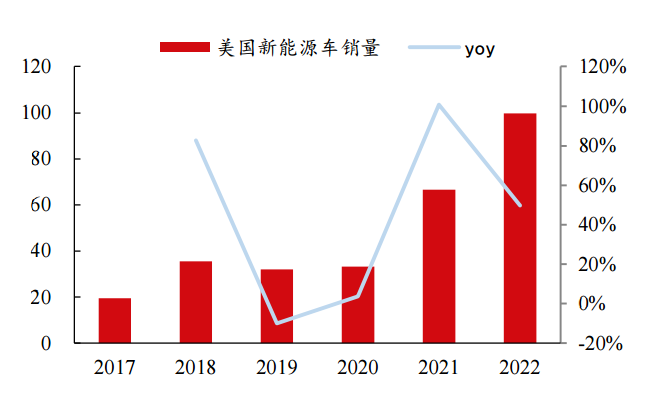 图8:2021年以来美国新能源车销量大幅增长,资料来源:充电联,国联证券