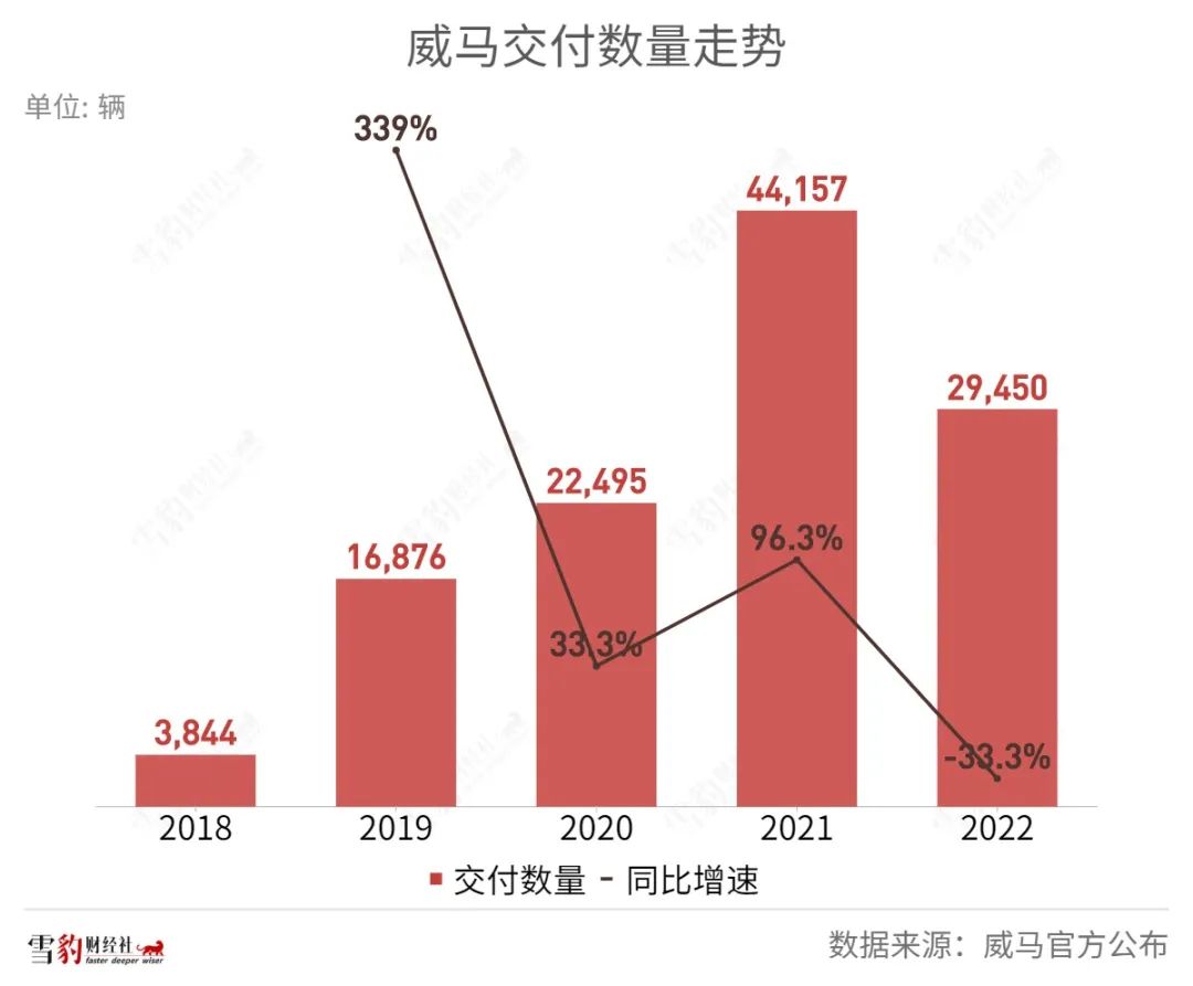 密集开店未能提振销量,反而加重了威马的财务压力。2022年,威马交付2.95万辆新车,与蔚小理相比几乎只是个零头。但2021年,威马支付给经销商的返利和补贴总额高达16.2亿元,超过了年收入的1/3。