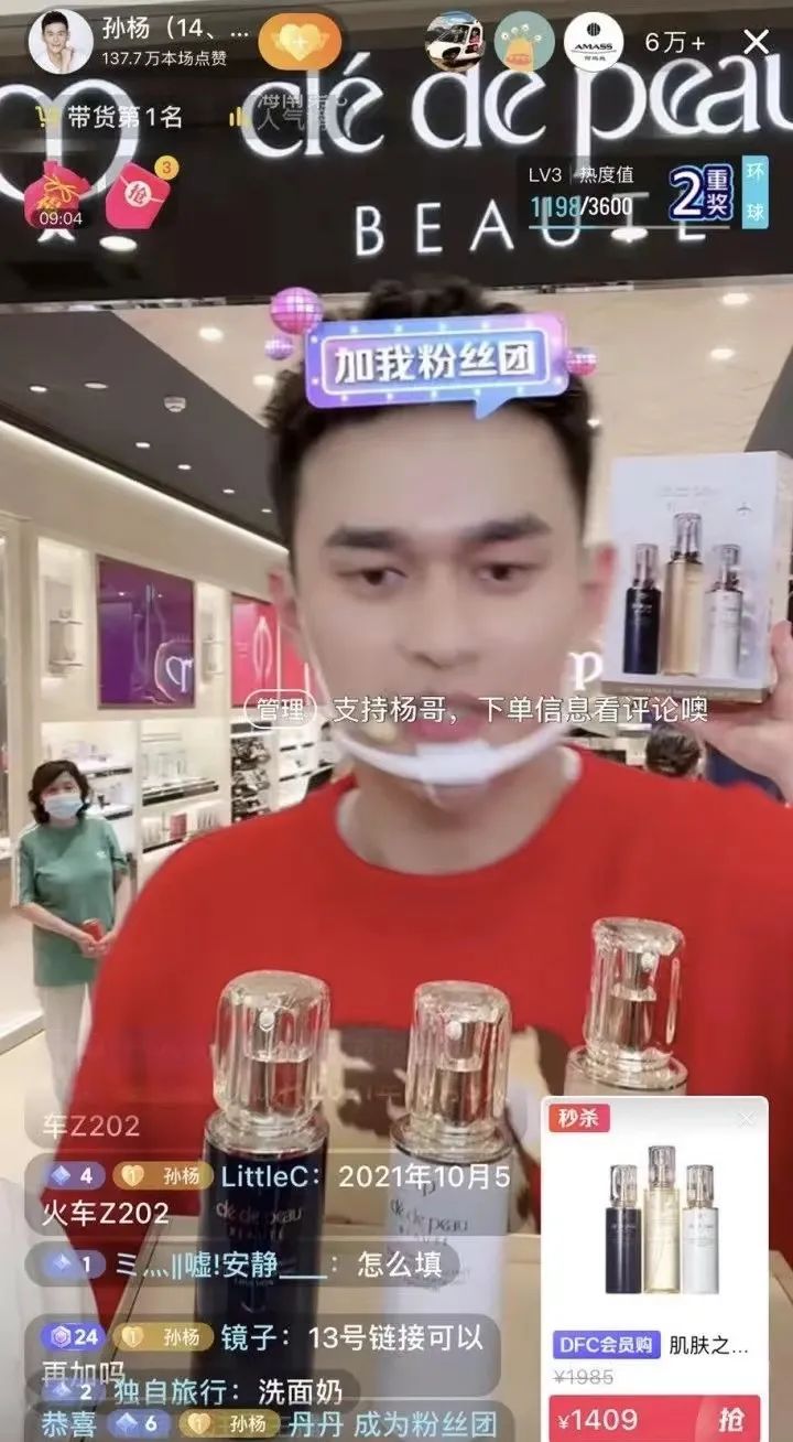 更令人意外的是,在部分美妆产品方面,当时的新人孙杨还能拿到比李佳琦便宜的价格。比如一款LAMER海蓝之谜150毫升的修护精萃水,在此前双11李佳琦直播间,叠加各种优惠券之后,折合下来一瓶要945元左右,而在孙杨直播间只需要639元。