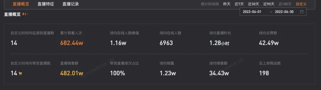 当天的首场直播,孙杨从中午十一点播到了深夜十二点,除了休息时间,累计直播时长近11个小时。根据新抖数据,孙杨在三亚连续直播两天,销售额高达4881万。