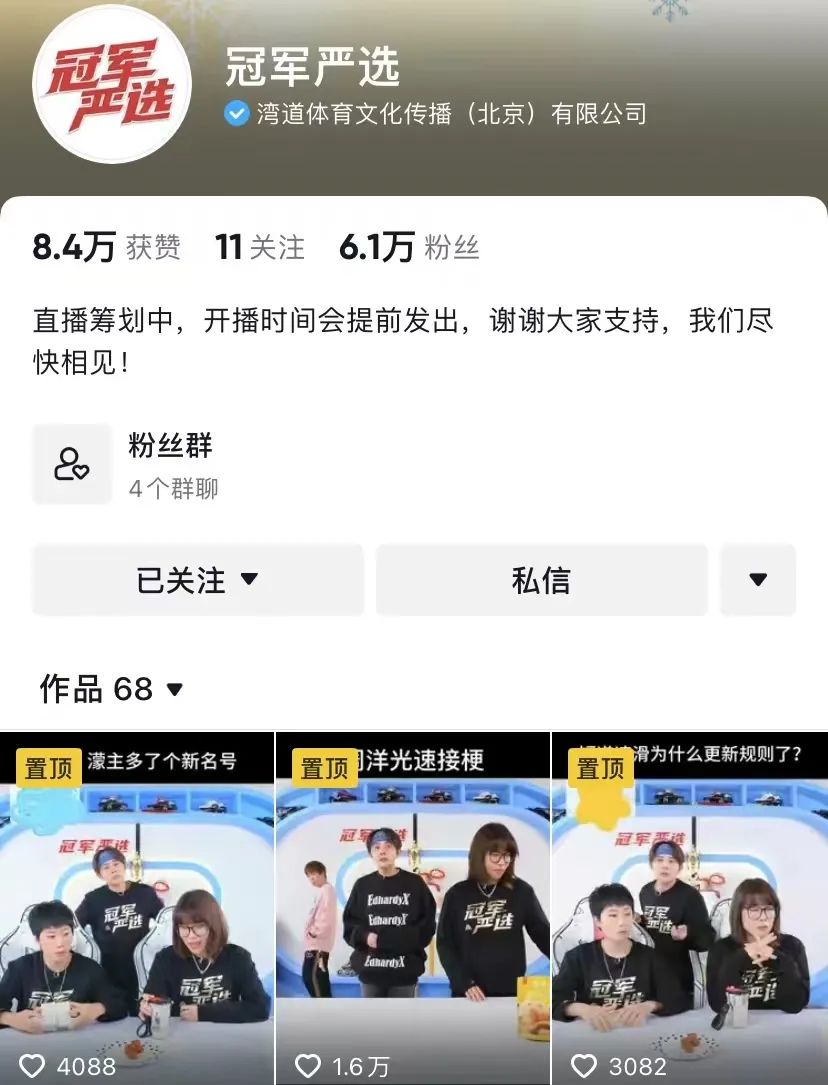 冠军严选账号主要由同样拿过冬奥会冠军的张会和周洋负责出镜直播带货,王濛偶尔会出现在直播间和观众互动。