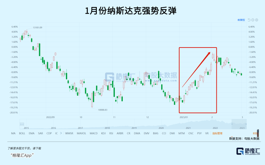 第一是美国的这一次通胀反弹,美联储的鹰派加息预期什么时候完结。在1月份的反弹中,特斯拉能够翻倍,相当一部分的助力要归功于美国通胀持续回落,美联储放缓加息节奏,当月的纳斯达克就反弹了20%。