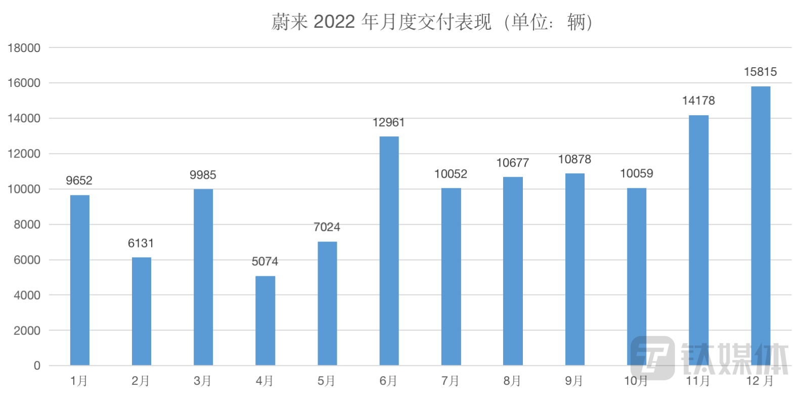 具体到月度交付表现,蔚来汽车交付主要集中于下半年,受车型更新换代以及疫情等因素影响,蔚来上半年仅有六月交付过万。