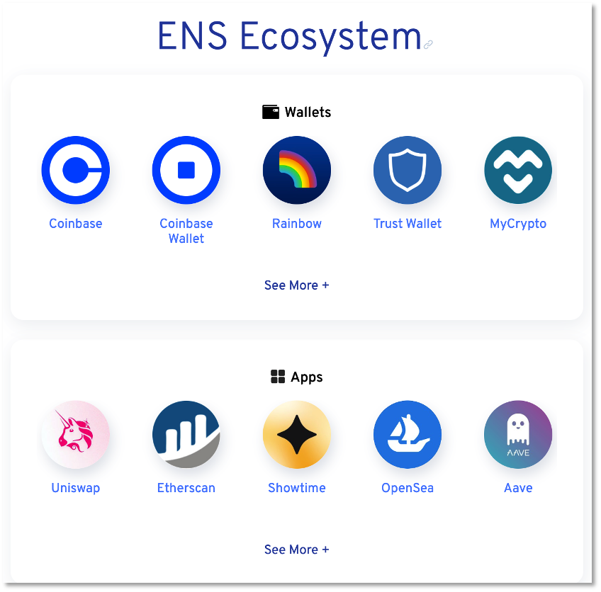 问题是,“去中化域名”可以在所支持的区块链公链上畅通无阻。按照使用功能,Web3域名可以实现钱包地址、用户账号等信息的集合,聚合用户数据等。以ENS域名为例,可以直接与以太坊钱包地址、Web2邮箱、NFT交易平台账户甚至社交账号绑定,有ENS域名的用户可以直接用之接收或发送以太坊网络上任何应用产生的加密资产和NFT,只要标准是以太坊的即可。