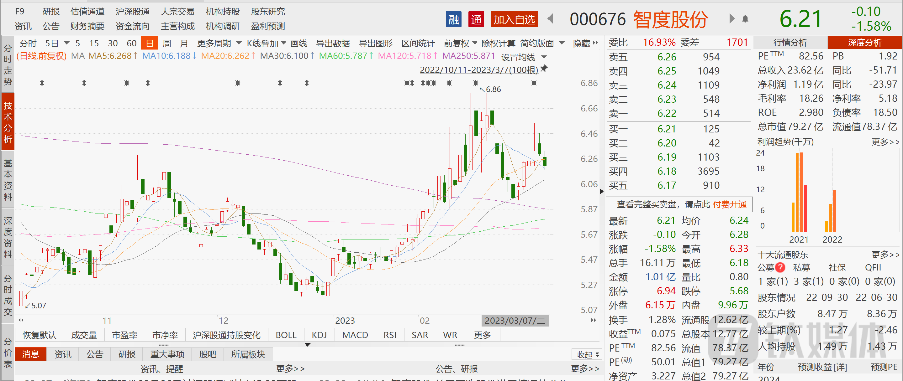 智度股份有元宇宙概念,公司在元宇宙业务有了实质性的营收,这对公司来说理应属于利好,因为毕竟很多概念距离商业化落地还有很长的路。不过,从二级市场股价表现来看,市场对其反应并不热烈。消息出来后,智度股份当天高开低走,截至3月7日午间收跌1.58%,股价报收6.21元,总市值79.27亿元。