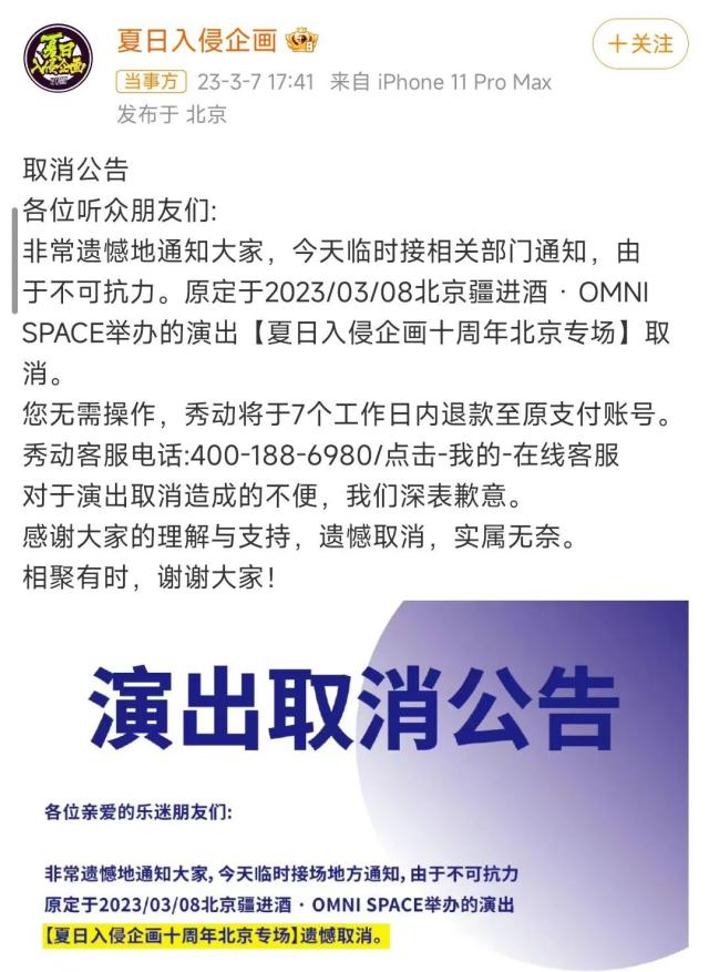 在评论区里,似乎能找到取消的原因:因为黄牛的大量抢购,让部分乐迷购买溢价票并被骗,最终进行了举报等行为,导致演出不得不叫停。乐队成员灰鸿在评论区里发文,“努力过了,没有办法”“希望大家不要买黄牛票谨防被骗”。