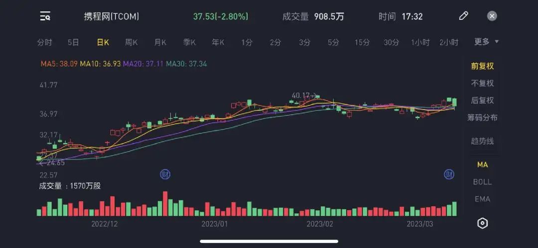 图/携程股价走势图 来源/老虎证券 燃次元截图