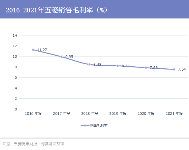 多个讯号表示,A00市场增长已然见顶。还有一大噩耗是,盘踞微型车市场多年的老选手五菱,其王牌产品宏光MINI EV在今年1月掉到16416辆,同比下降了38.5%,而将时间线拉长后发现,近几年,五菱的销售毛利率连年下降,价格战越打越凶残。