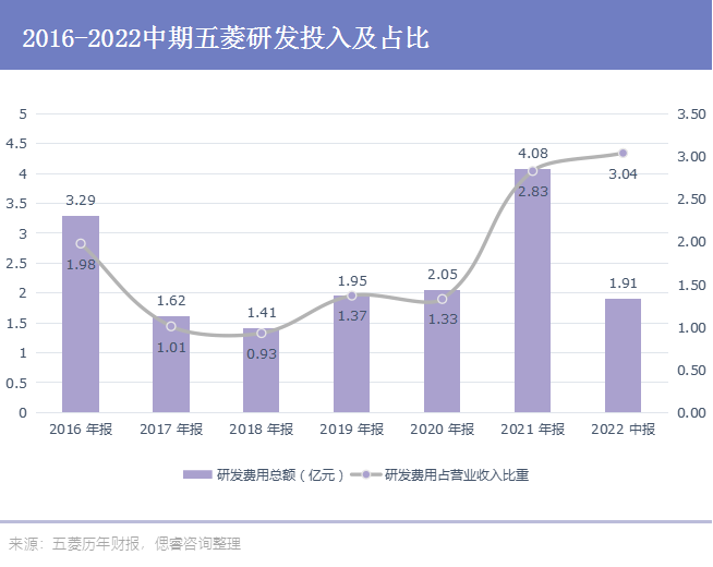 五菱无法让用户用更高的价格,选择并无底气的智能化配置。而并无底气的智能化背后是少得可怜的研发投入: