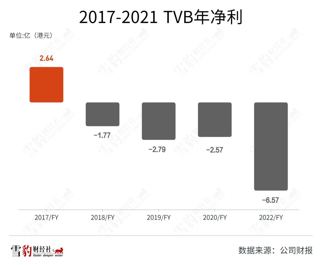 2018-2021年,TVB连续4年亏损,2022年上半年亏损2.24亿港元。从2017年开始,TVB股价从30多港元跌至2023年初的3.8港元,市值从顶点的370亿港元跌去了90%多。