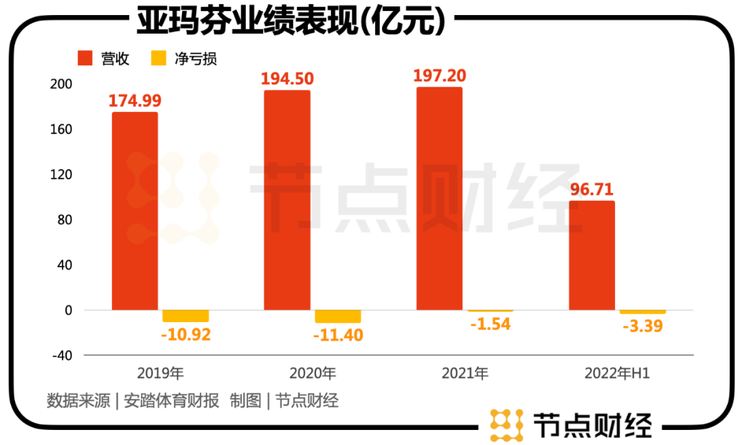 财报显示,2019年3月26日至2019年12月31日,安踏全资持有亚玛芬的合营公司AS Holding收益为174.99亿元,净亏损10.92亿元;2020年-2022年上半年,该公司营收分别为194.5亿元、197.2亿元、96.71亿元,净亏损分别为11.4亿元、1.54亿元、3.39亿元。
