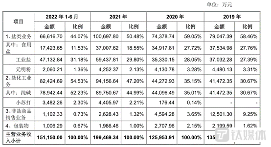 2019年-2021年和2022年1-6月(下称“报告期”),江盐集团分别实现营业收入13.82亿元、12.95亿元、20.55亿元、15.45亿元,净利润分别未4232.45万元、14582.46万元、18909.62万元、27123.72万元,业绩持续增长。
